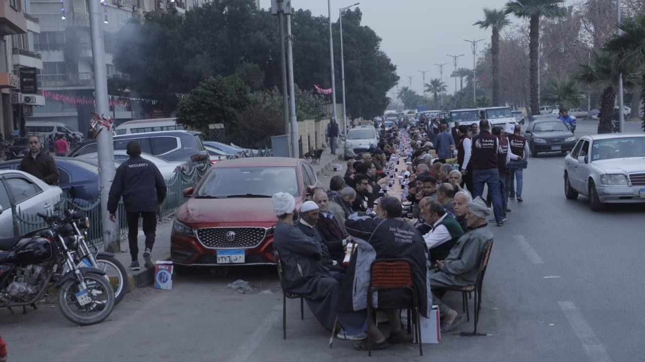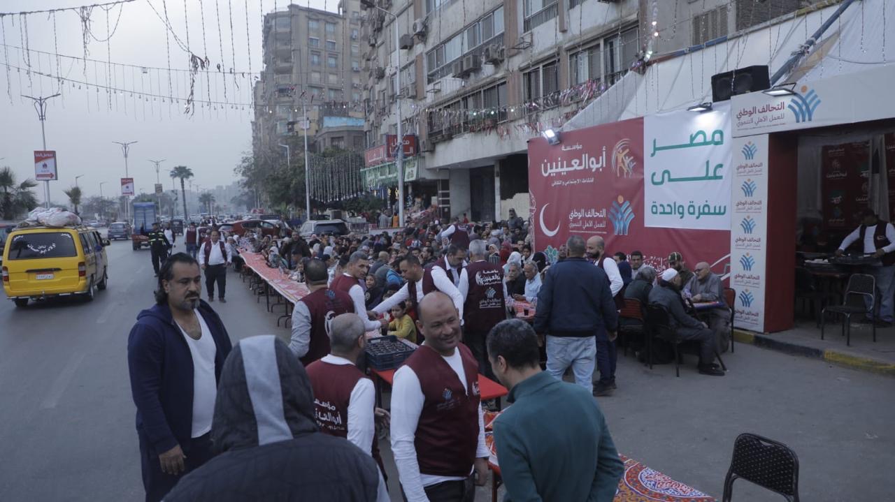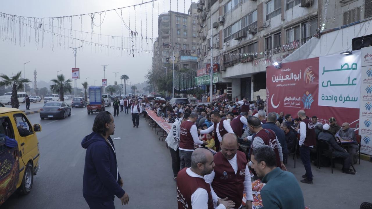 As part of the “Egypt United at One Table” initiative organized by the National Alliance for Civil Development Work during the holy month of Ramadan, the Abou El-Enein Foundation for Charitable and Cultural Work participated through its major Ramadan table, considered one of the largest “Mawaed Al-Rahman” in Giza Governorate. The table provides nearly 20,000 meals daily, including both iftar and suhoor, in addition to mobile vehicles that roam the streets to offer iftar to passers-by, and teams responsible for delivering meals to the homes of families unable to attend.