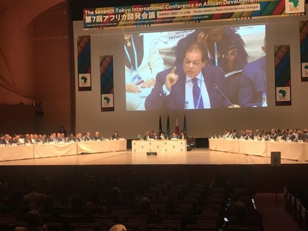 Abou El-Enein speaks before 50 African heads of state during the Africa-Japan Summit, representing the African private sector