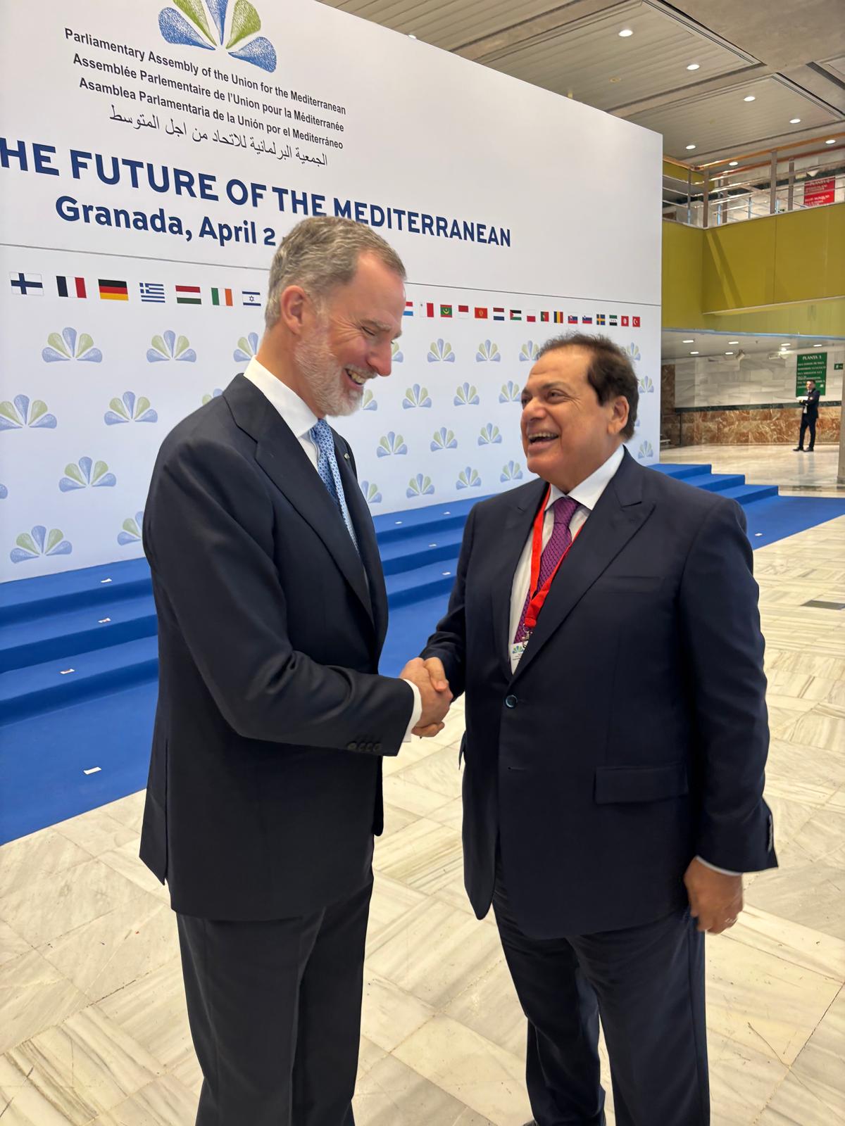 His Majesty King Felipe VI of Spain congratulates MP Mohamed Abou El-Enein on his election as President of the Parliamentary Assembly of the Union for the Mediterranean.