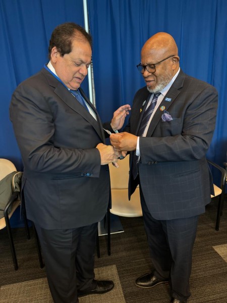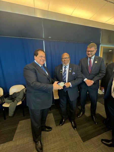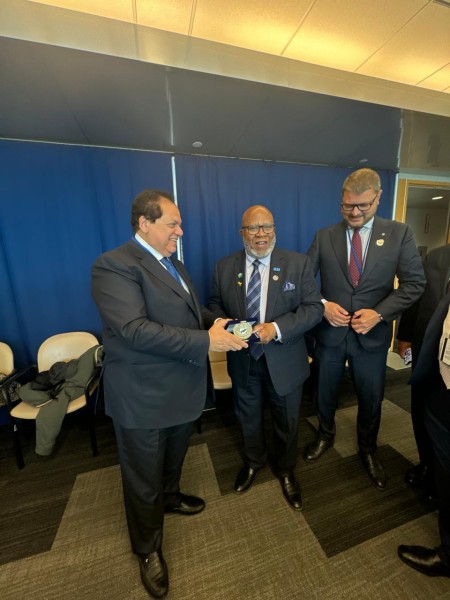 رئيس الجمعية العامة للأمم المتحدة يُهدي أبو العينين الشارة التذكارية لـ المنظمة