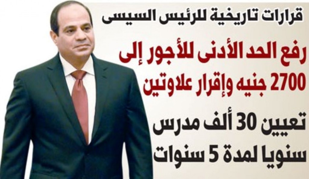 وقال أبو العينين إن رفع الحد الأدني للأجور للمرة الثالثة فى عهد الرئيس السيسي ليصل إلى 2700 جنيها وزيادة العلاوات وتعيين 150 ألف معلم – حزمة من الإجراءات الاستثنائية التي تتكامل مع مبادرات الرئيس .. ومشروع حياة كريمة .. وما تشهده بلادنا كل يوم من مشروعات عملاقة وإنجازات .. خارطة أمل تكتمل لتشكل واقع #الجمهورية_الجديدة .. جمهورية الحق والعدالة الاجتماعية وبناء الإنسان.