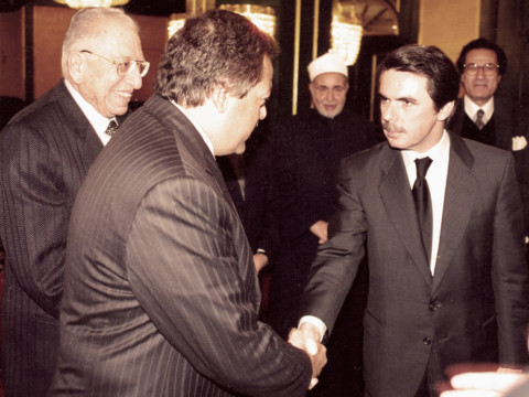 النائب محمد أبو العينين يرحب برئيس الوزراء الاسبانى خوزيه ماريا آزنار خلال