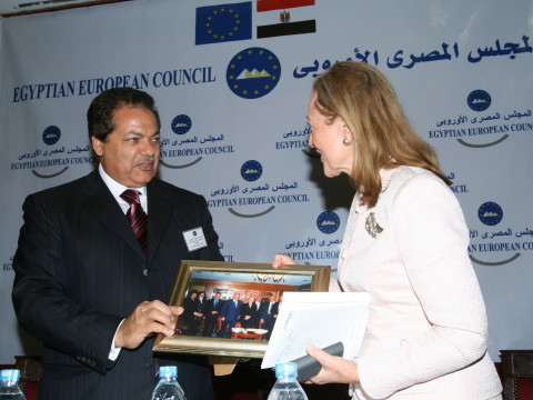 السيد محمد أبو العينين رئيس مجلس الاعمال المصرى الاوروبى مع السيدة بنيتا