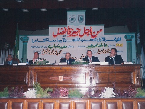النائب محمد أبو العينين ورئيس جامعة القاهرة ومحافظ الجيزة خلال افتتاح مؤتمر
