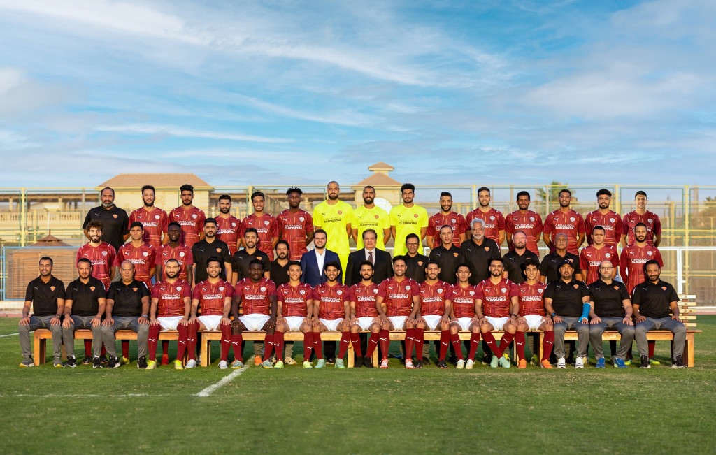 النائب محمد أبو العينين مع لاعبي فريق كرة القدم لنادي سيراميكا كليوباترا