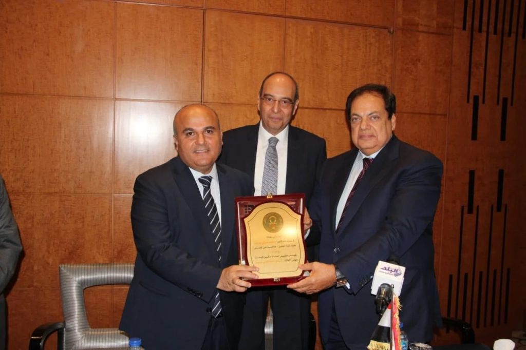 تكريم النائب محمد أبو العينين خلال توقيع بروتوكول التعاون بين مركز كيميت للتحكيم الدولي وكلية الحقوق بجامعة عين شمس