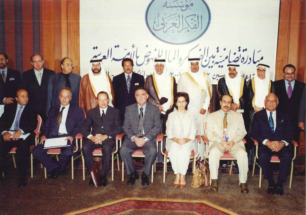 (2001) السيد/ محمد أبو العينين عضو مجلس الأمناء لمؤسسة الفكر العربي في صورة جماعية مع أعضاء مجلس أمناء المؤسسة برئاسة الأمير/ خالد الفيصل رئيس المؤسسة وأمير منطقة مكة المكرمة