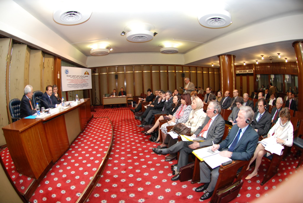 النائب محمد أبو العينين رئيس اللجنة الاقتصادية والمالية والاجتماعية بالجمعية البرلمانية للاتحاد من أجل المتوسط خلال رئاسته لأحد اجتماعات اللجنة والتى عقدت بالقاهرة فى مارس 2009