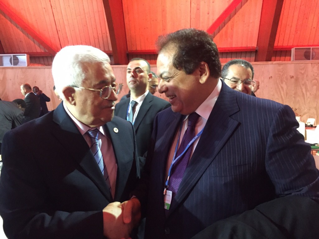 Home » News » Mr. Mohamed Abou El-Enein, Honorary President of the Parliamentary Assembly of the Mediterranean (PAM), with Palestinian President Mahmoud Abbas during the United Nations Climate Change Conference held in Paris – October 28, 2015.